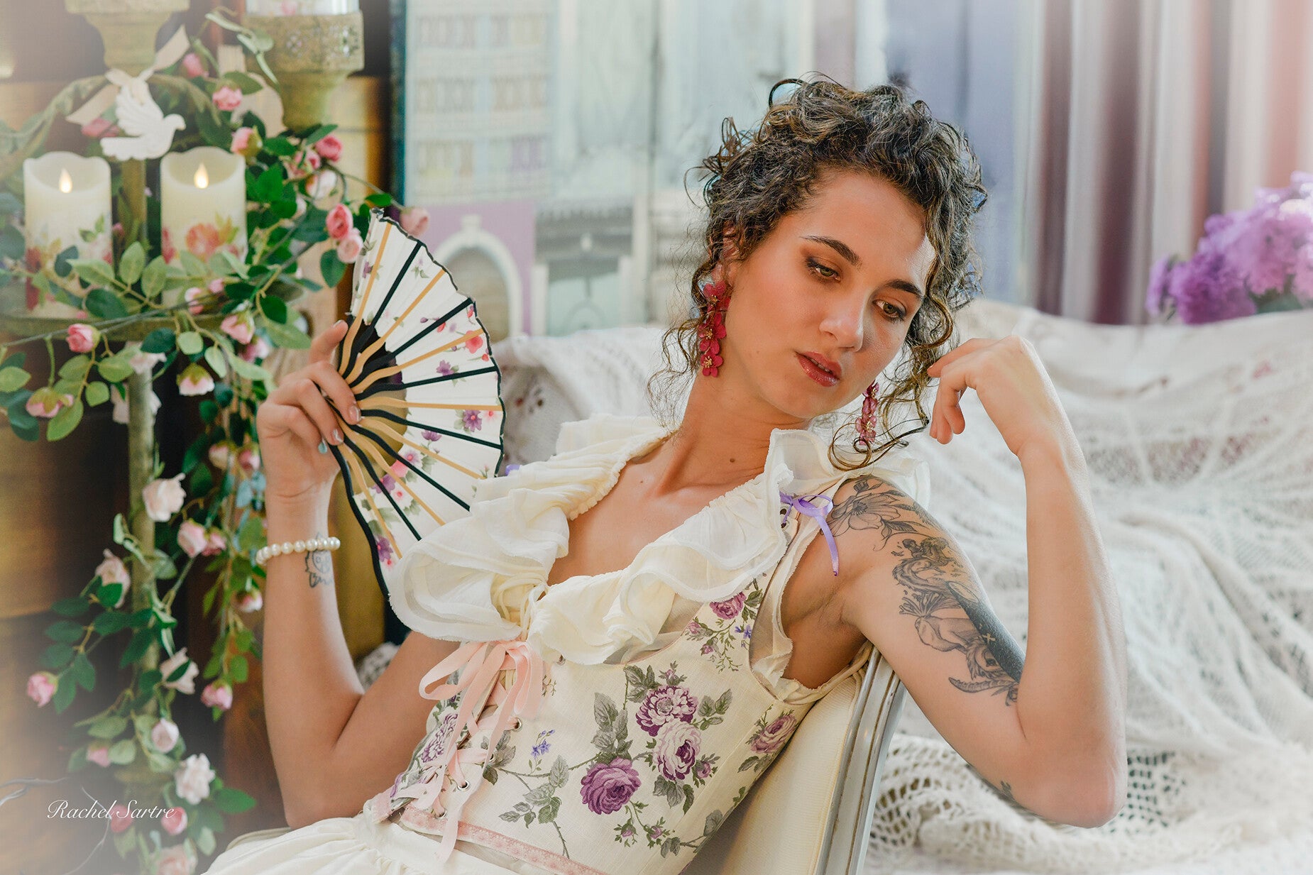 Plongez dans un univers de douceur et de romantisme avec ce corset fleuri, une véritable ode à la féminité. Orné d'un délicat motif floral, il évoque un jardin en pleine floraison.