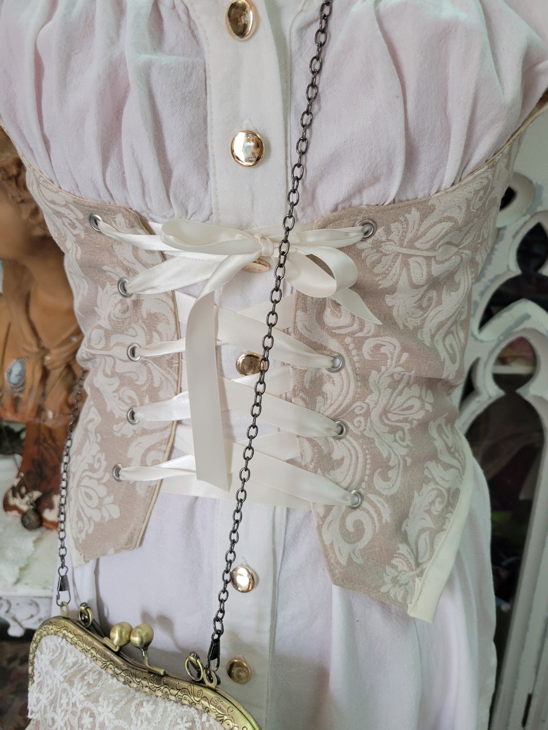 Le Corset Underbust Séraphine est un corset raffiné confectionné dans un tissu impérial, pensé pour sublimer la silhouette avec élégance.